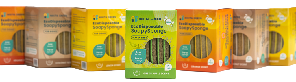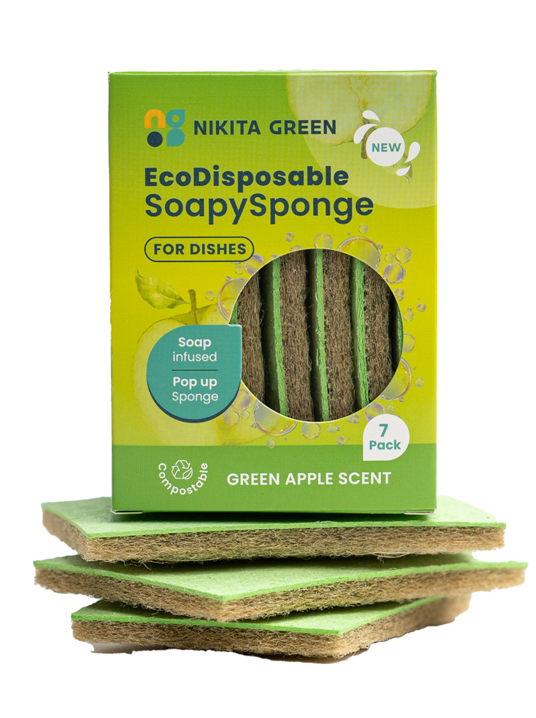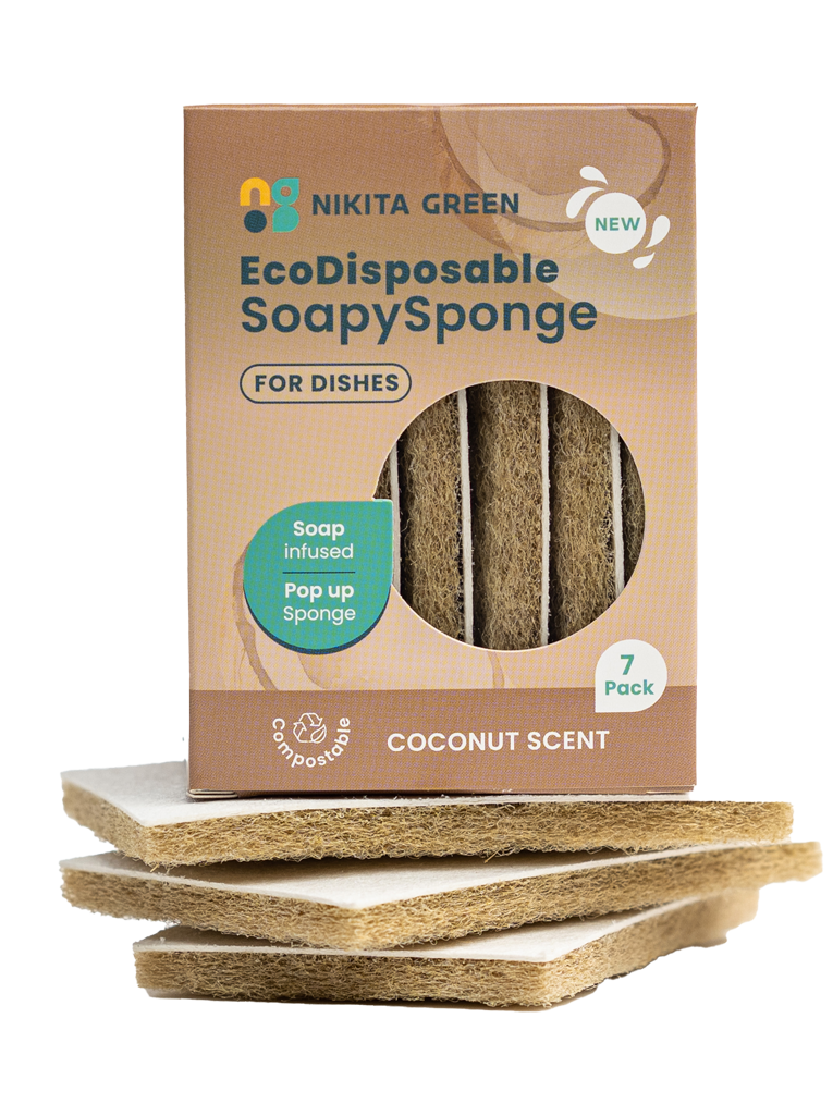 EcoDisposableSoapySponge הוא ספוג שטיפת כלים חד פעמי, המיוצר מתאית צמחית טבעית. הוא מכוסה בשכבה של סיסיל, ומכיל בתוכו סבון ידידותי לסביבה, המבטיח ניקוי עוצמתי אך עדין לכלים שלכם. והכל מגיע ארוז באריזה ירוקה.